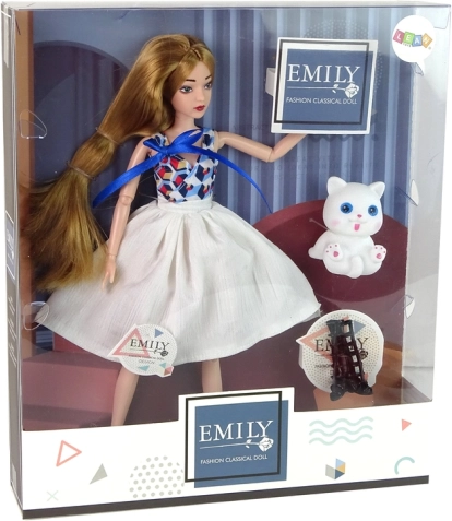 Oplev den elegante dukke EMILY med blødt kæmmet langt hår, moderne top og hvid nederdel. Takket være artikulerede arme og ben kan børn nemt sætte hende i forskellige positurer og lave deres egen modeshow. Med følger en sød hvid killing, der fuldender enhver legefortælling.