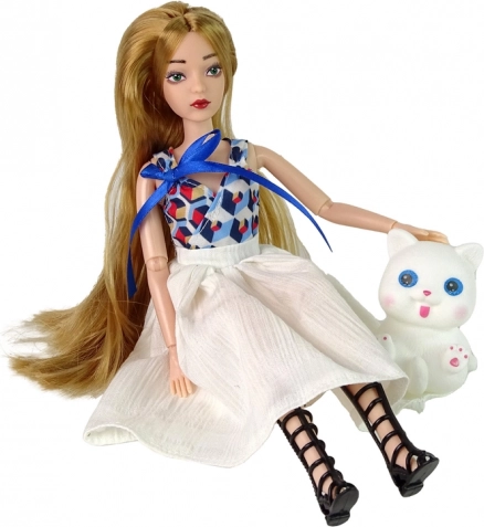 Den søde dukke EMILY med en hvid killing giver timevis af kreativ leg. Hun har langt hår, et stilfuldt outfit med hvid nederdel og bevægelige lemmer for nem posering. I pakken finder du også udskiftelige sko, så stilen kan ændres efter humør. Ideel gave til børn fra 3 år.