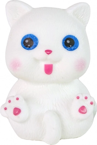 Sættet indeholder en hvid killing med blå øjne – perfekt til at skabe historier og øve omsorg for et kæledyr.
