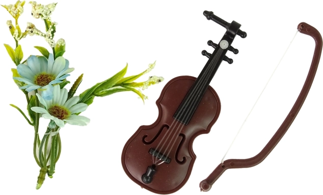 - Pakkens indhold: dukke EMILY, violin, dekorative blomster