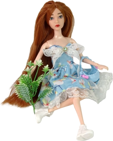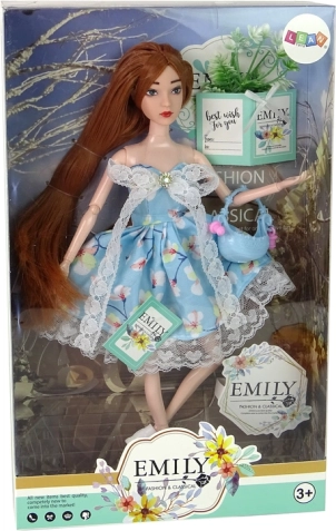Dukken Emily bringer en frisk forårs-stemning ind i legen. Det lange røde hår er perfekt til at lære fletninger og kreative frisurer, mens de grønne øjne giver dukken et unikt udtryk. Den blå kjole med fint blomstermotiv, blonde med hjerter og en sød sløjfe fuldender stilen. Hvide sneakers giver et afslappet touch til ethvert eventyr.
