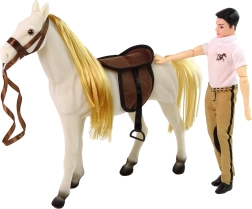 Oplev en verden af eventyrlig leg med denne ride-dukke og hvide hest! Det perfekte sæt til enhver lille hesteentusiast, som udvider legemulighederne og udvikler fantasien. Legetøjet inkluderer en dukke med bøjelige lemmer til forskellige legepositioner og et stilfuldt outfit, der perfekt gengiver ridemoden. Den hvide hest er lavet af et behageligt materiale og har et realistisk udseende, inklusive sadel og trense.
