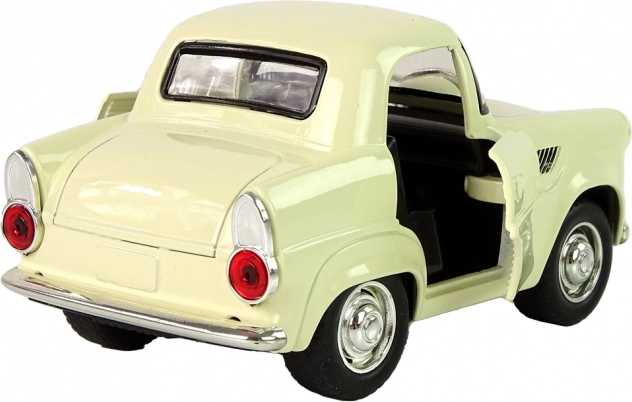 Klassisk metalbil i beige med sorte og sølvdetaljer for et realistisk udseende.