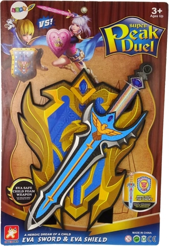 Denne sættil små helte indeholder et rundt skjold og et detaljeret udsmykket sværd af blød EVA-skum. Materialet er behageligt at røre ved, dæmper stød og er ideelt til sikker fægteleg både inde og ude. De markante blå og gyldne motiver vækker fantasien og inspirerer til fortællinger om mod og ære.