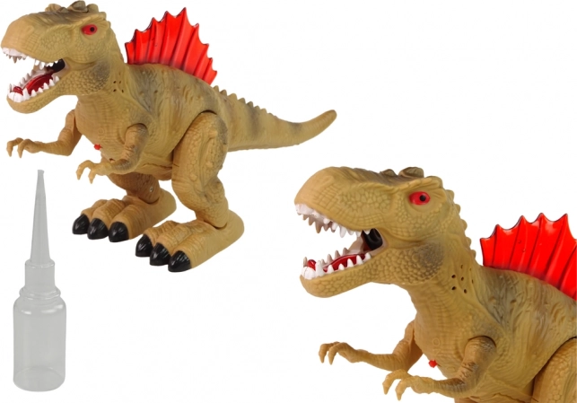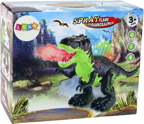 Dinosauren reagerer ikke kun med lyd og lys på stimuli, men dens mund kan også udsende vanddamp, hvilket simulerer en ildeffekt. Denne sikre og fascinerende visualisering vil helt sikkert understøtte fantasifuldt spil. Legetøjet har også en lysende rygsøjle, der oplyser dinosaurens ryg.