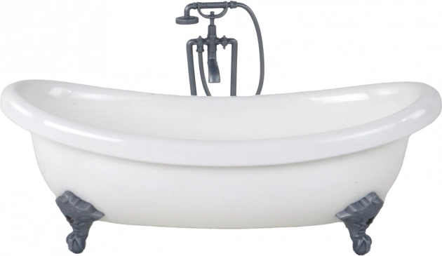 Det stilfulde hvide badekar med metalfarvede fødder forvandler enhver leg til en spa-oplevelse. Ideelt til afslappende scener og pleje af dukken.