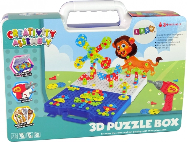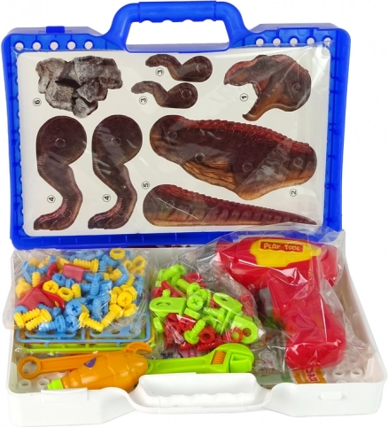 Konstruktionssæt 3D DIY dinosaurer med kuffert, boremaskine og skruer. Udvikler kreativitet og finmotorik. CE- og EN71-certificeret. Til børn 3+.