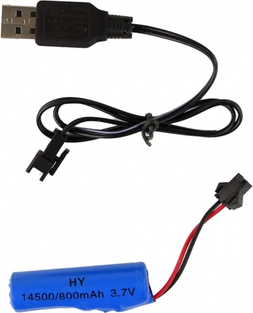 Der medfølger et 14500/800 mAh 3,7 V batteri og et USB-opladekabel, så du ikke behøver at købe strømforsyning til traktoren separat.
