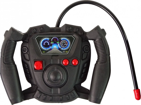 Der medfølger et genopladeligt 14500/800 mAh 3,7 V batteri og en USB-oplader, så legen kan begynde med det samme. Controlleren (batterier medfølger ikke) ligger perfekt i hånden og muliggør præcis manøvrering. Modellen er egnet til børn fra 6 år og opfylder standarderne CE og EN71.