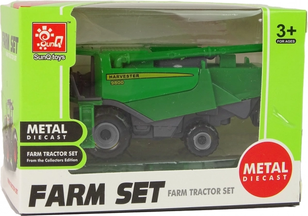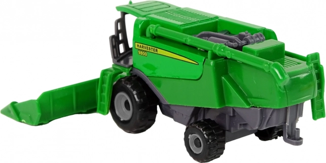 Lille grøn plast-høstmaskine med realistiske detaljer og aftagelige dele. Ideel til rejser, for børn fra 3 år. CE-certificeret, EN71-standard.