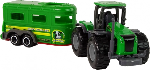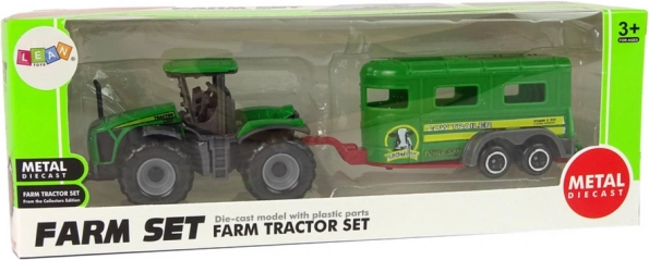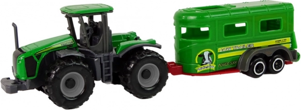 Dette sæt kombinerer en grøn traktor og en matchende trailer til bondegårdseventyr derhjemme og på farten. De kompakte mål passer perfekt i børnehænder og støtter udviklingen af fantasi og finmotorik. Takket være den robuste plastkonstruktion tåler legetøjet almindelig brug.