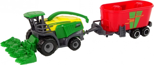 Mejetærsker med trailer – grøn‑rød landbrugsmaskine, plastiklegetøj