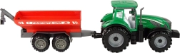 Opdag en sjov legetøjsmaskine for små landmænd: en grøn traktor med rød trailer og friktionsdrev til kørsel både frem og tilbage. Realistiske detaljer, holdbar plastkonstruktion og store hjul stimulerer fantasien og udvikler motorikken. Ideel til bondegårdsleg og transport af små skatte. Velegnet til børn fra 3 år, med CE-certificering og standarden EN71.