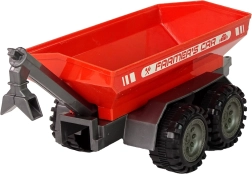Den røde trailer kan nemt kobles på eller af. Børn kan “transportere last”, efterligne landbrugsaktiviteter og skabe deres egne historier.