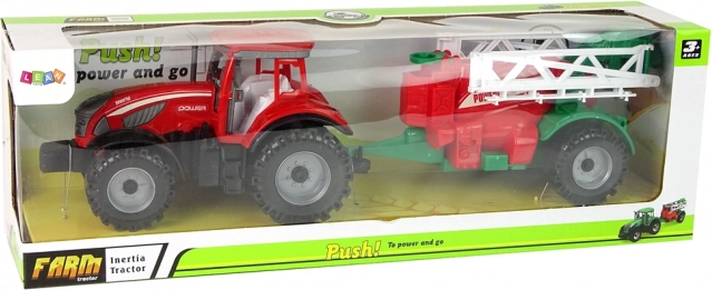 Denne røde traktor med sprøjte giver børn en autentisk oplevelse af arbejdet på marken. Takket være friktionsdrev kører køretøjet selv efter et skub, og den lange hvide sprøjtebom giver legen et realistisk præg. Sprøjten kan let afmonteres, så legescenarierne kan varieres efter fantasien.