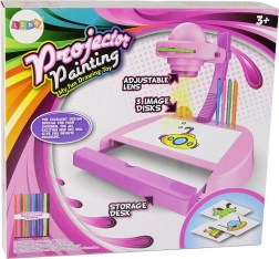 Denne lyserøde projektor, specielt designet til børn, giver mulighed for kopiering af billeder fra de medfølgende skabeloner og deres projektion fx på en væg. Billedet kan fokuseres ved hjælp af det justerbare objektiv. Projektoren tilbyder underholdning og forbedrer manuelle færdigheder ved at opmuntre til præcision og nøjagtighed, der er nødvendig ved tegning og skrivning.