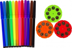Takket være opbevaringsskuffen er det nemt at holde det kreative rum i orden og have alle nødvendige værktøjer inden for rækkevidde. Produktet er udstyret med 12 farvede tusser og 3 diske med forskellige billedskabeloner.
