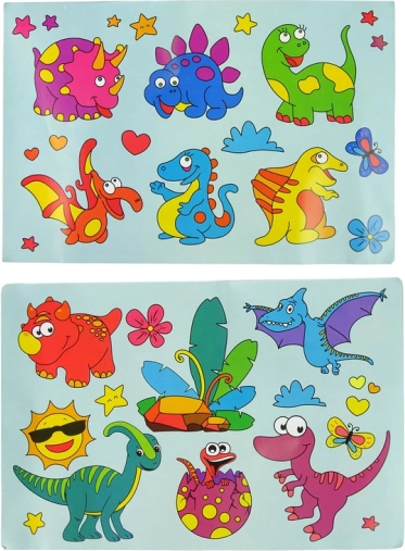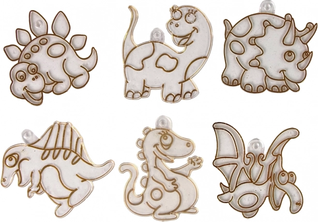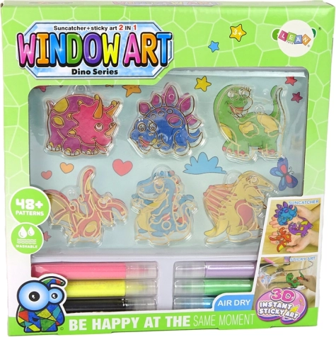 Sættet indeholder også 6 glasmalerier i dinosaurform, som kan sættes på glas ved hjælp af specielle sugekopper.