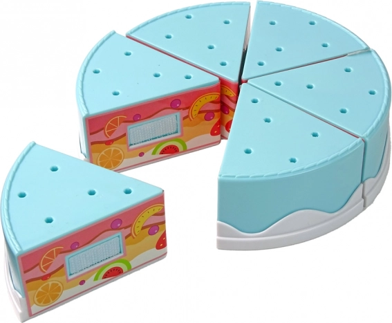 Kagen består af seks trekantede stykker, som let kan skæres over og samles igen takket være velcro. Realistisk leg uden skarpe kanter og rod.