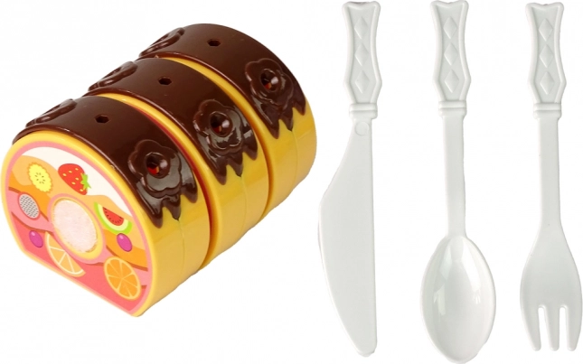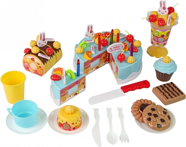 Forvandl legekøkkenet til et konditori. Med dette sæt kan børn samle og pynte en velcrokage, skære den med en plastkniv og servere søde sager på tallerkener. Legen støtter finmotorik, kreativitet og sociale færdigheder ved fælles teselskab.