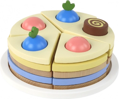Den søde trækage til at skære giver børn timevis af leg og læring. Sættet indeholder 8 stykker med velcro, en serveringsspatel og et fad. Styrker finmotorikken, hånd-øje-koordination og kreativ leg. Delene kan kombineres og pyntes efter ønske, så børn kan skabe deres egne kombinationer og små konditorscener.