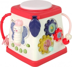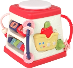 Denne farverige interaktive terning samler flere aktiviteter i én smart helhed. Hver side byder på en ny færdighed: fra træning af finmotorik over udvikling af hørelse og syn til den første ordforrådsindlæring på engelsk. Takket være de livlige farver og behagelige lyde vil børn straks elske legen.