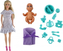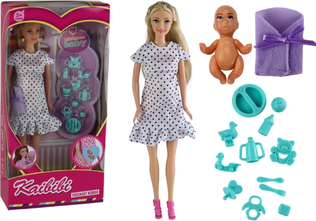 Graviditetsdukke med barn og tilbehør