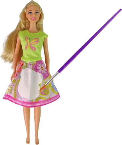 Denne søde dukke giver masser af sjov og udvikler kreativiteten. Med det lange hår kan der laves mange forskellige frisurer, og med kjolen beregnet til at male på kan barnet skabe et unikt outfit efter sin fantasi. Et godt gaveidé til børn, der kan lide at skabe og lege modedesignere.