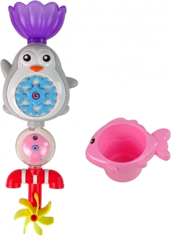Bring glæde til den daglige badetid med dette pingvin-legetøj. Alt, hvad du behøver, er at hælde lidt vand i den lilla blomst på toppen, og magien begynder med det samme!