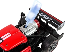 Den sporty RC-bil i størrelse 1:16 imponerer ved første øjekast med et markant design og dampeffekt fra udstødningen efter påfyldning af vand med pipette. Under kørsel tændes de forreste LED-lygter, så oplevelsen af drift og race bliver endnu mere realistisk.