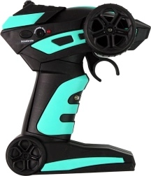 Den ergonomiske 2,4G-fjernbetjening tilbyder intuitiv styring frem/tilbage og højre/venstre, med automatisk køretillstand og en knap til belysning af udstødningen. Den lette, men robuste konstruktion og gummidæk sikrer stabilitet og godt greb på forskellige underlag.