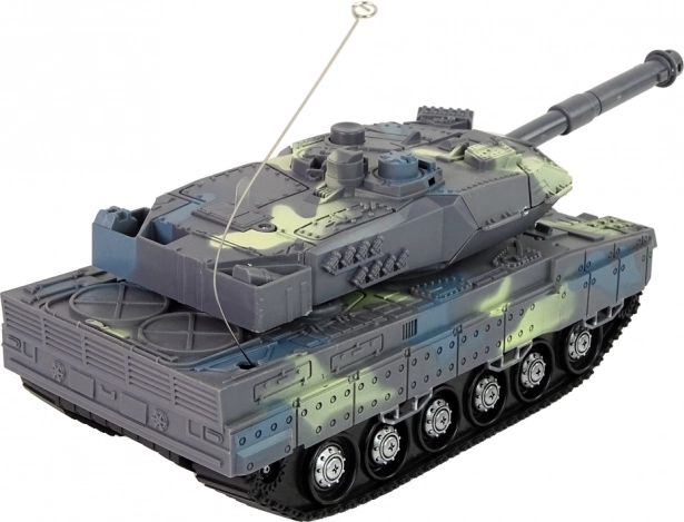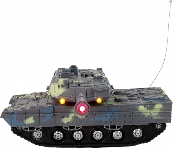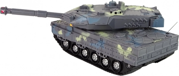 Militærtanken med camouflage-mønster efterligner perfekt et ægte pansret køretøj. Dens bælter gør det muligt at køre jævnt på forskellige underlag. Tanken er udstyret med et bevægeligt kanonløb, som ved skydning aktiverer lyd- og lyseffekter – du hører skudlyden, og løbet oplyses af en rød LED-diode.