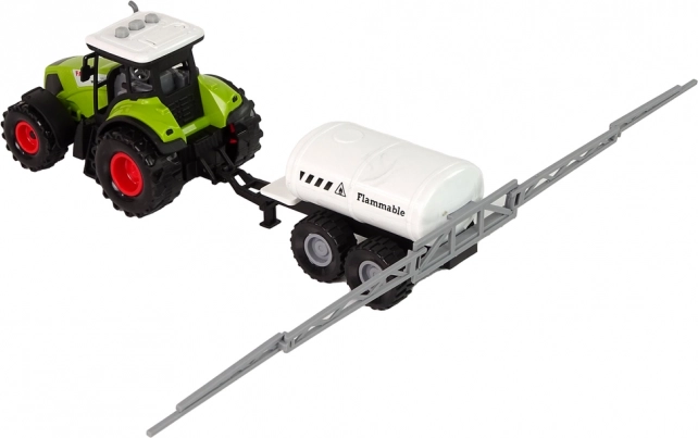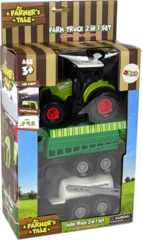 Legetøjstraktor med trailer og landbrugsmaskiner tilbyder en komplet mini-gård! Denne realistiske model giver børn mulighed for at forstå, hvordan arbejdet på en landbrugsbedrift fungerer. Traktoren er udstyret med tre funktionsknapper på taget af kabinen, som styrer motorlyd, bakkealarm og horn samt aktiverer LED-lys.