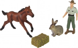 I pakken finder du en brun hest, en landmand, en hare og en balle hø – den ideelle kombination til realistiske gårdscener. Takket være de kompakte mål ligger figurerne godt i hånden selv på de mindste.