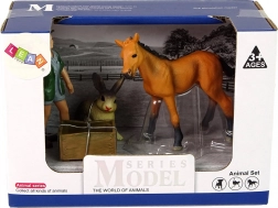 Sæt med figurer med en lys hest, en hare og en dyrlæge til kreativ leg. Realistisk udførelse, hård gummi og ikke‑giftige materialer sikrer sikker underholdning for børn fra 3 år.