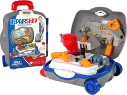 En rullende værktøjskuffert forvandler ethvert barn til en lille reparatør. Sættet indeholder sikkert plastværktøj og en arbejdsflade til leg hjemme og på farten. 17-dele sæt, kuffert på hjul med udtrækkeligt håndtag og nem opbevaring understøtter kreativitet og finmotorik. Velegnet fra 3 år, opfylder EN71 og CE.