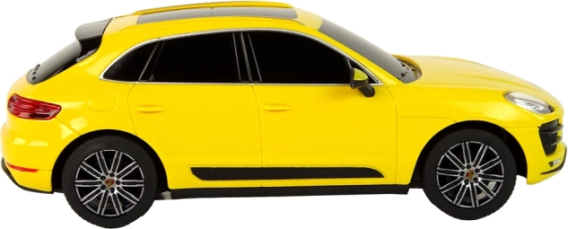Den tro Porsche Macan Turbo i skala 1:24 skiller sig ud med elegant gul lak, mørkt tonede ruder og præcise karrosseridetaljer. Takket være gummihjul klarer den glatte overflader og let ujævnt terræn og leverer jævn og stille kørsel.