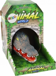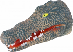Denne grå krokodille-hånddukke imponerer med et realistisk udseende – fra den teksturerede skæl til de markante gule øjne. Takket være den bløde, elastiske gummi er den behagelig at røre ved og muliggør naturlige bevægelser af gab og hoved, så hver optræden bliver levende og sjov.