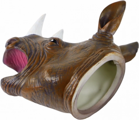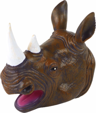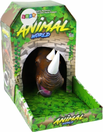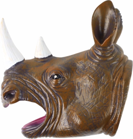 Denne næsehorns-hånddukke virker særdeles realistisk: Den har markante sorte øjne, præcist formede horn og en struktureret overflade, der minder om hud. Den bløde gummi ligger godt i hånden og gør det nemt at bevæge kæben og skabe udtryk, så hver fortælling bliver til levende teater.