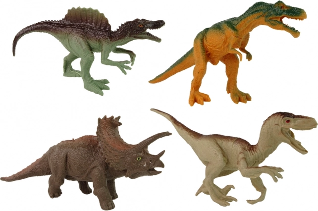 Dette sæt er ideelt til små elskere af forhistoriske skabninger. Det indeholder fire realistiske figurer af forskellige dinosaurarter: Triceratops, Velociraptor, Tyrannosaurus og Spinosaurus. Hver af dem udmærker sig ved unik farvetegning og imponerende størrelse, hvilket gør legen endnu sjovere.