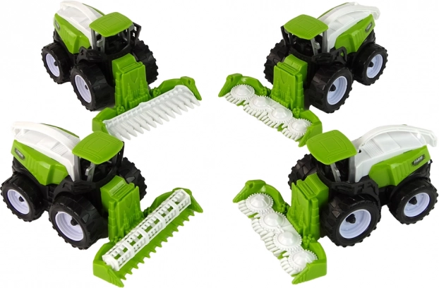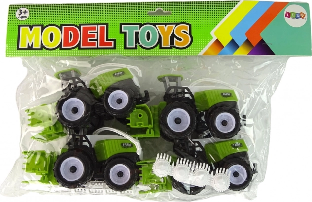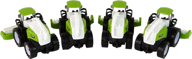 Sæt med fire børnetraktorer i realistisk grøn farve er skabt til små elskere af landbrugsmaskiner. Realistisk design og funktionelle detaljer giver børn mulighed for kreativ leg. Fremstillet af holdbar plast garanterer disse legetøj langvarig underholdning. Hver traktor i størrelsen 16 cm x 11 cm x 9 cm er let at manøvrere og kan kombineres med imitationer af landbrugsredskaber.
