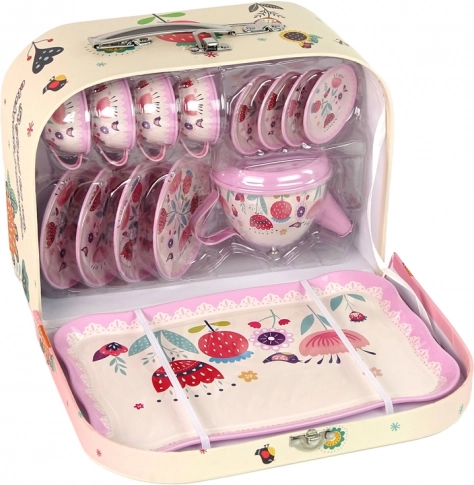 Tag teselskabet med overalt! Dette te- og kaffesæt til børn i kuffert er designet til nem transport og øjeblikkelig underholdning. Delene i elegant rosa med søde mønstre begejstrer børn og motiverer til social leg, udvikling af kommunikation og fantasi.