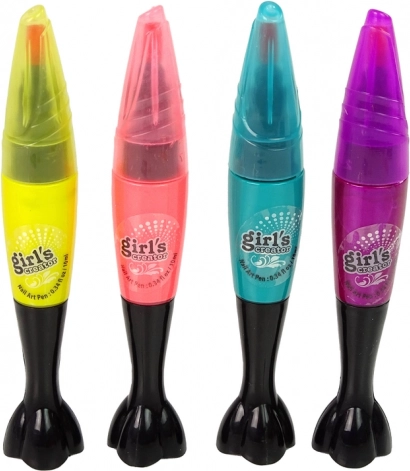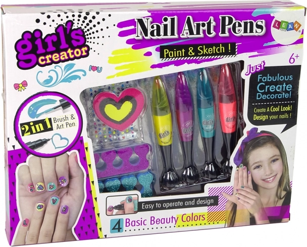 Brugen er enkel: form neglene med filen, påfør farve, og tegn fine mønstre, prikker eller linjer med tuscherne. For en ekstra effekt kan du tilføje klistermærker eller pynt og skabe en original stil, der begejstrer hver dag.
