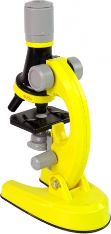 Dette gule børnemikroskop er et fremragende valg til de første skridt ind i biologiens og naturfagenes verden. Med den roterende revolvernæse med tre objektiver vælger du let forstørrelse 100×/400×/1200×; jævn finfokusering og det praktiske præparatbord giver overskuelige observationer.