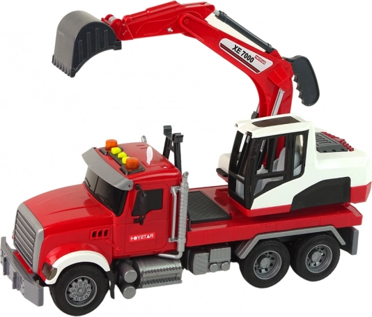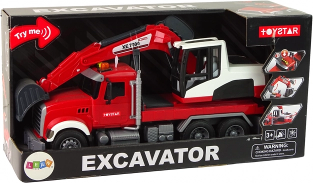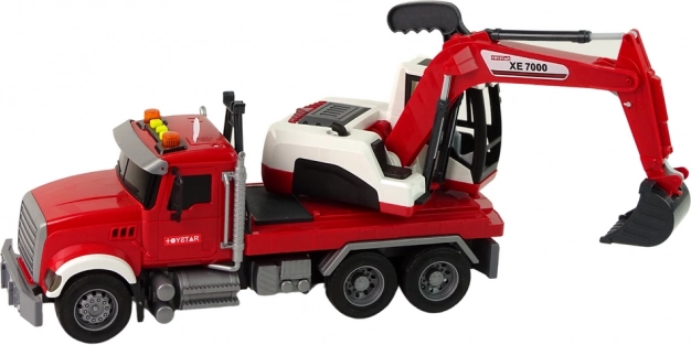 Dette detaljerede sæt omfatter en trækker med trailer og en fuldt funktionsdygtig gravemaskine. Gravemaskinens kabine kan dreje 360° for nem rækkevidde på “byggepladsen”, og skovlen kan justeres i højde og vinkel til at grave, læsse og flytte materiale. Børn får en realistisk legeoplevelse takket være lys- og lydeffekter, der styres med tre knapper på taget.