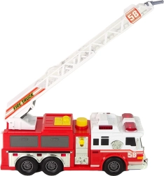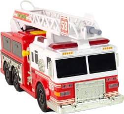 Denne detaljerede røde brandbil tager børn med ind i reddernes verden. Den byder på funktioner som udtrækkelig og roterende stige, lys- og lydeffekter og endda vandtilførsel, der aktiveres med den store gule knap for at simulere slukning.