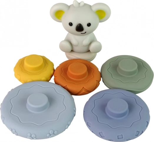 Silikonepyramide med koala tilbyder en sjov og sikker leg for spædbørn. Legetøjet indeholder forskellige farverige og teksturerede ringe, som dit barn nemt kan gribe, dreje og bygge i forskellige konfigurationer, hvilket forbedrer deres hånd-øje-koordination og logisk tænkning.