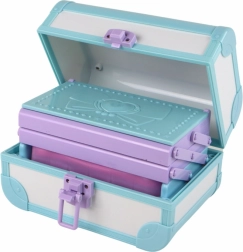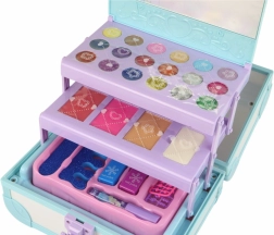 Oplev en verden af skønhed med dette eksklusive kosmetiksæt. Indeholder 6 øjenskygge nuancer, 6 lipglosses og 6 glimmer for uendelige makeup muligheder. Desuden finder du 4 blushes og highlighters, der giver dit look friskhed og skinnende glans. Sættet inkluderer også to neglelakker i lilla og blå samt en glitrende gloss.