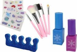 Til nem påføring medfølger et praktisk værktøjssæt: 3 lyserøde børster, applikator og brynbørste. Der medfølger også essentielle elementer til negleudsmykning: blå glitrende tåseparator, fil og 3D-stik til unikt design.
