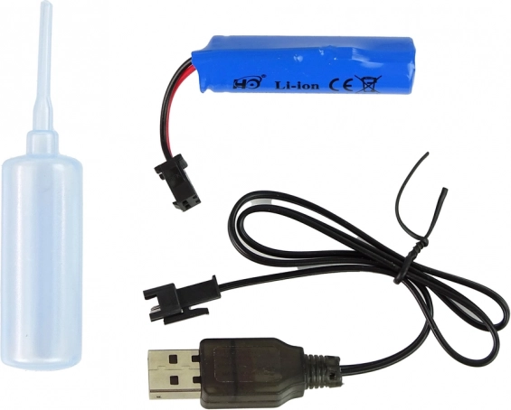 Sættet indeholder en joystick-fjernbetjening til jævne manøvrer, et genopladeligt Li‑ion-batteri med USB-opladning samt en vandflaske til dampeffekten. Legetøjet udvikler kreativitet, fantasi og koordinationsevner hos børn fra 6 år.